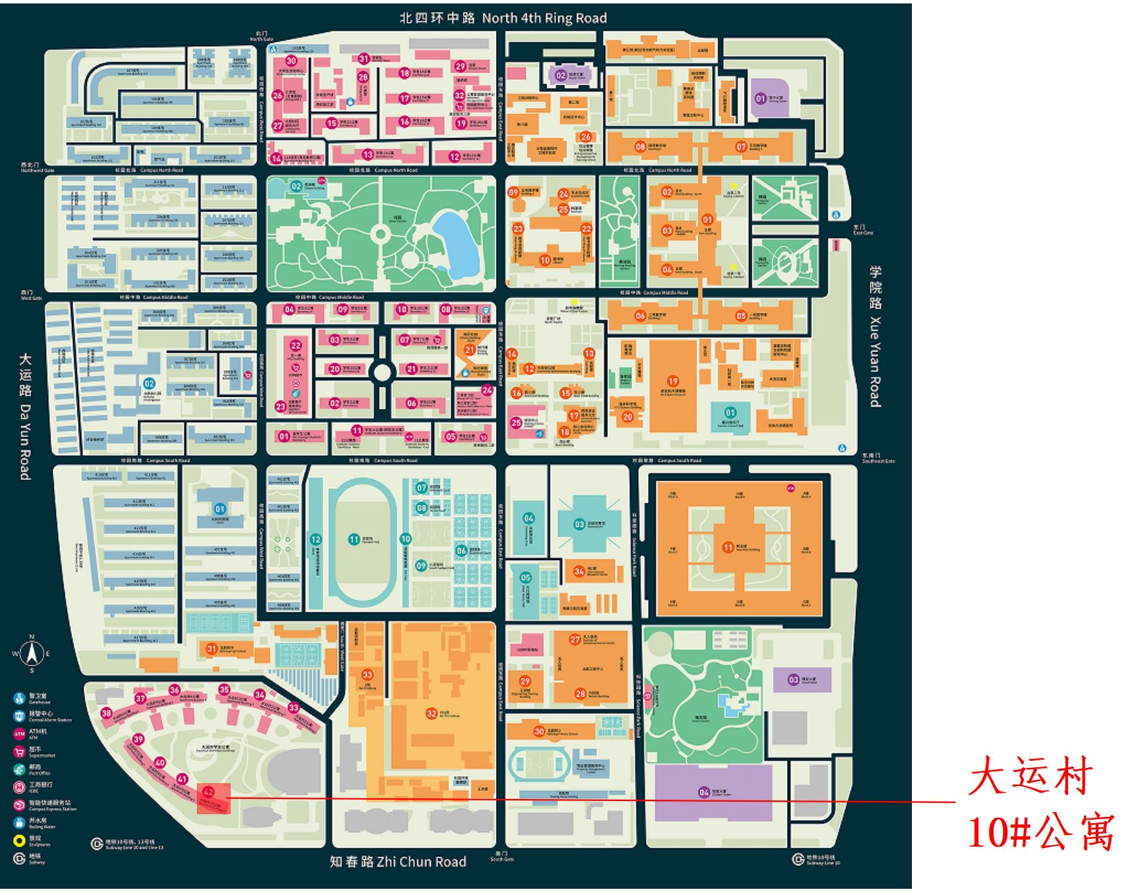 学院路校区大运村建于2001年,原为大学生运动会运动员村,后作为学生宿舍沿用至今,大运村10#公寓坐落于园区南部,建筑高度62.45米,地上十九层,地下一层。